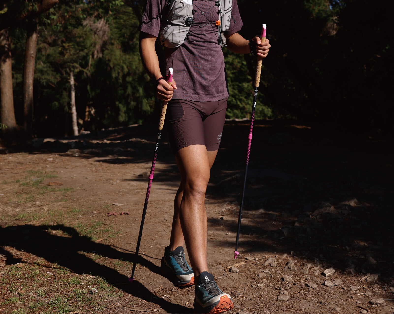 動きながらのポールの展開スピードをテストしました。当社の精密なボタンロックシステム(Button Lock System)を搭載したRP003は、1秒以内に完全に展開してロックすることができました。さらに、革新的なクリップオンシステムにより、李氏は瞬時にストラップの着脱ができ、ランニングから岩場の登りへと移行する際に最大限の柔軟性と安全性を提供しました。